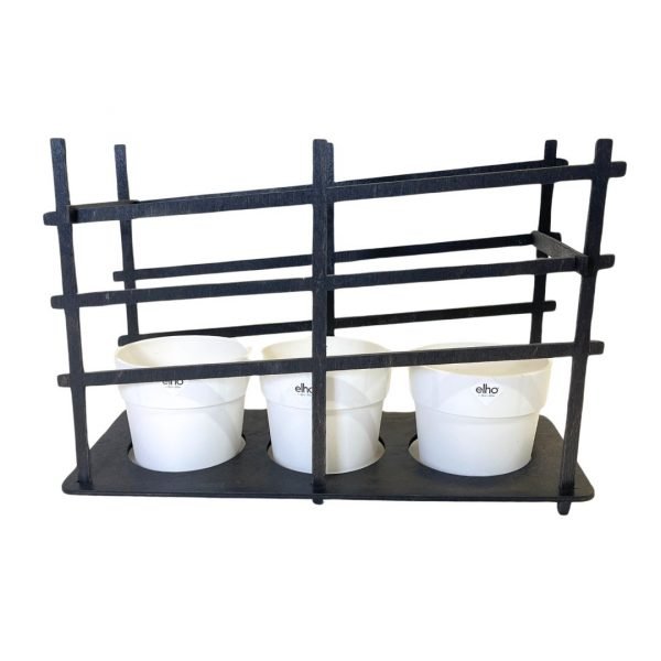 Kolmen yrtin telineessä yrtit pysyvät ryhdikkäänä ja kauniin telineen voi nostaa tarjolle sellaisenaan ruokapöytäänkin! Yrttiteline on tyylikäs lisä keittiön sisustukseen ja sen avulla saat tuoreet yrtit käden ulottuville. Telineen hintaan kuuluu kolme Elhon kierrätysmuovista valmistettua valkoista ruukkua.