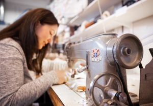 Käsineiden valmistamisessa on monta käsityönä tehtävää vaihetta: