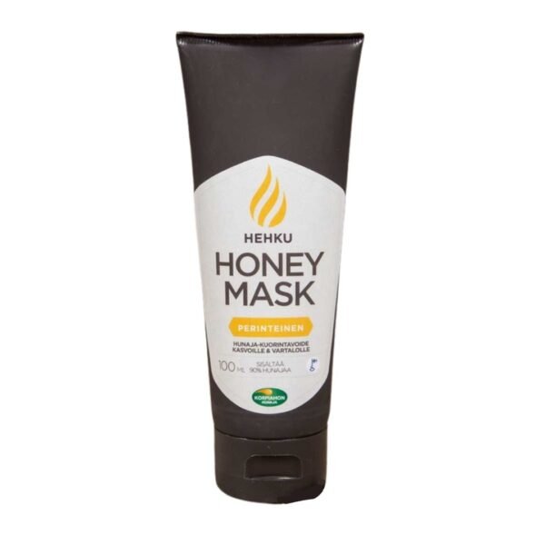 Hunajainen Hehku Perinteinen Honey Mask -kuorintavoide on hellästi kuollutta ihosolukkoa poistava ja samalla ravitseva vartalo- ja kasvonaamio. Voit virkistää ihoa helposti ja luonnollisin keinoin ilman kemikaaleja. Hunajakuorintavoide ja naamio sisältää 90% suomalaista Korpiahon hunajaa, manteliöljyä ja kuorivia sokerikiteitä.
