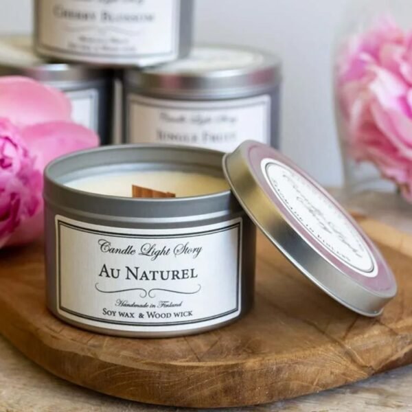 Candle Light Storyn soijavahakynttilät on valmistettu kotimaisena käsityönä laadukkaista raaka-aineista. Soijavahakynttilä on tyylikkäässä metallirasiassa. Kynttilä on vegaaninen.