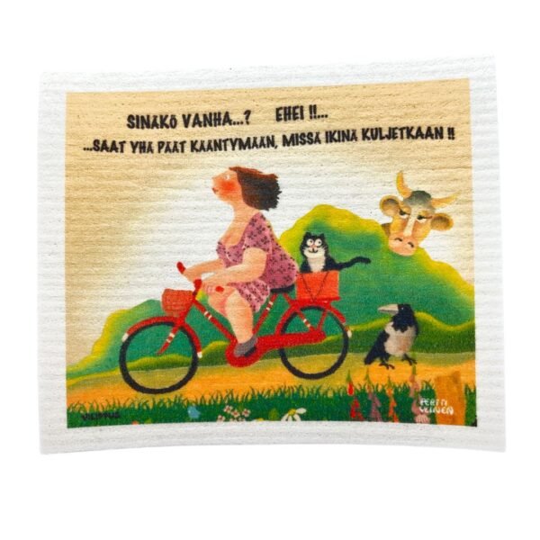 Kotimainen Vilippus-tiskirätti on hauska syntymäpäivälahja nuorekkaalle! Taiteilija Pertti Ylinen on luonut rättiä koristavan värikkään kuvituksen. Veikeä kuvitus kera hauskan tekstin ”Sinäkö vanha? Ehei, saat yhä päät kääntymään missä ikinä kuljetkaan!” piristää siivoushetkiä.