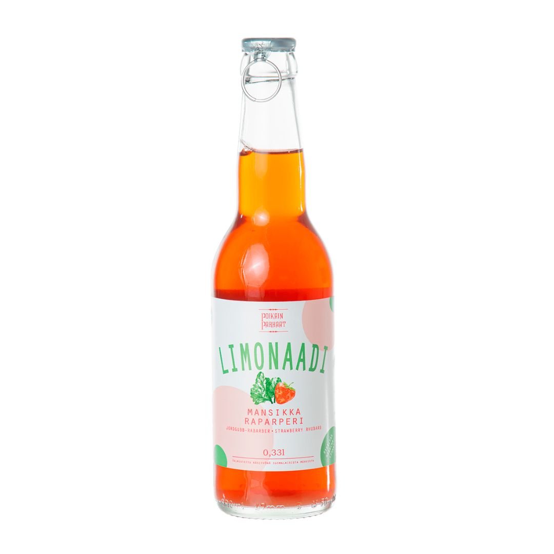 Kotimainen ja herkullinen mansikka-raparperilimonaadi sopii hyvin ruokajuomaksi tai virkistäväksi kesäjuomaksi vaikkapa piknikillä tai saunan jälkeen nautittavaksi! Ihana lahjaidea myös viemisiksi naapureille, tuttaville ja sukulaisille.