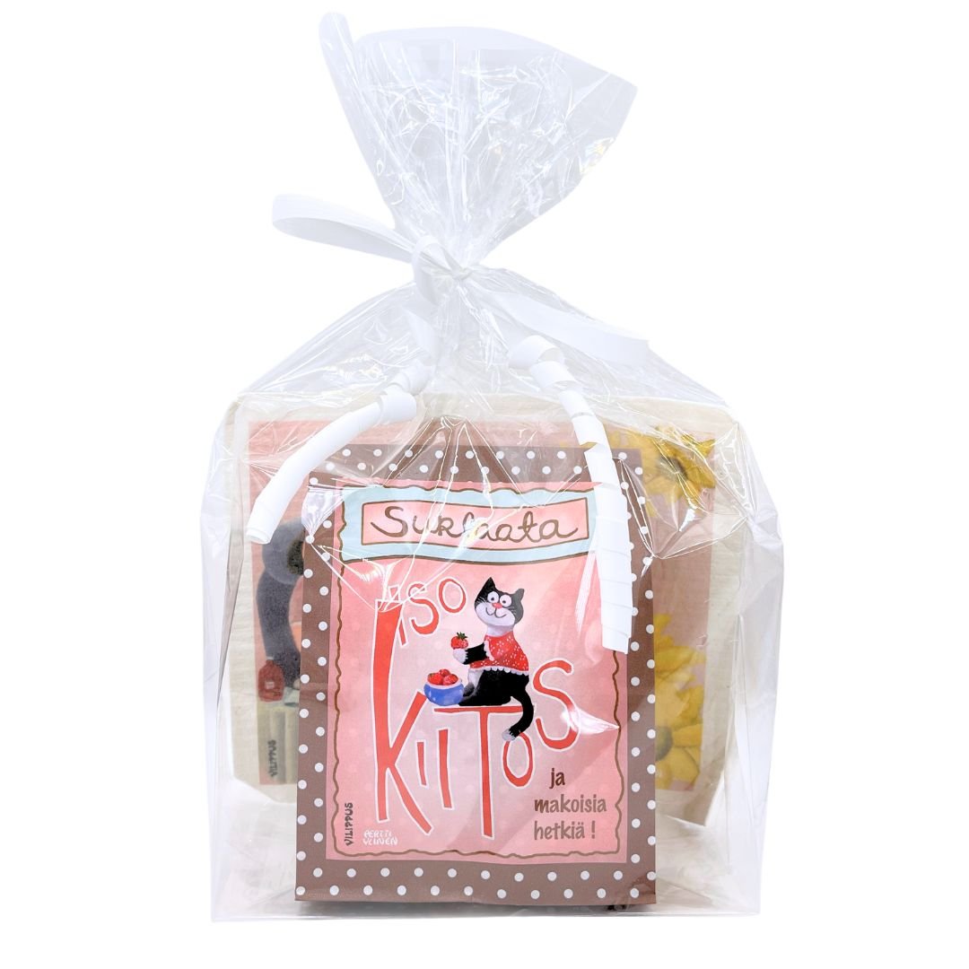 Lahjapaketti on pakattu kauniiseen sellofaanipussiin. Lahjanarun väri saattaa vaihdella. Voit tilata lahjan myös helposti suoraan lahjansaajan osoitteeseen!